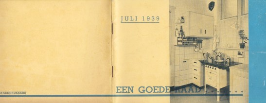 22. KOKEN Een goede raad…. Kookt electrisch. Amsterdam, Electriciteitswerken Gemeente Amsterdam, Juli 1939. Liggend formaat 11 x 17 cm. Met foto’s van fornuizen e.d. Op glanspapier gedrukt. Gaaf.