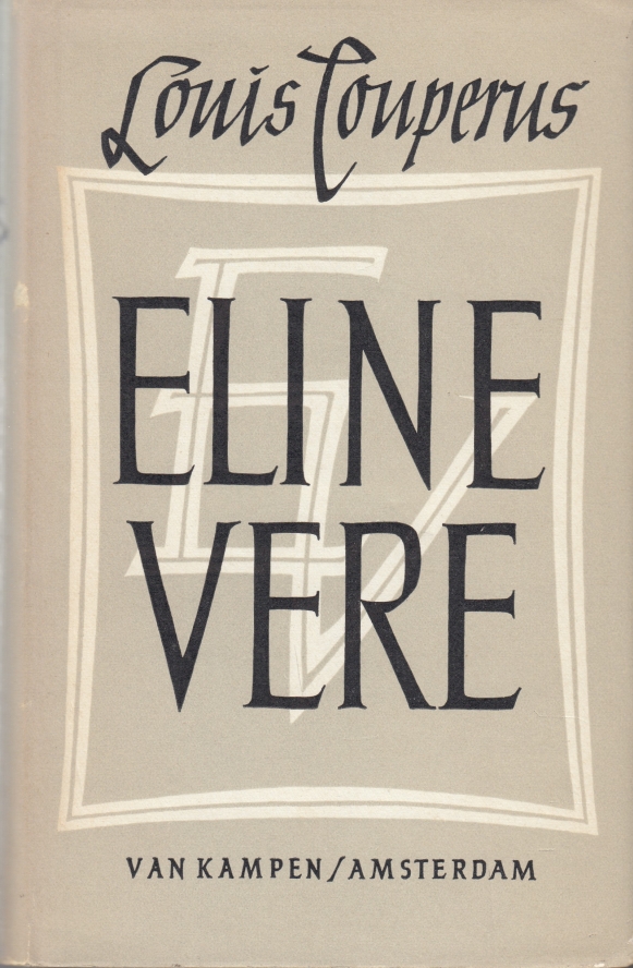 11. COUPERUS, Louis Eline Vere. Een Haagse Roman. Amsterdam, Van Kampen, [1956]. Linnen met stofomslag. 580 p. 11e druk. Schier onvindbaar: een druk uit de jaren vijftig, maar met verfijnd, sierlijk stofomslag. Aan de randen wat onvermijdelijke kreukjes; schaafplekje bij de rug, scheurtje in achterkant.