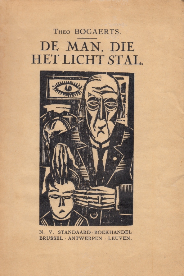 2. BOGAERTS, Theo De man, die het licht stal. (Met handgeschreven opdracht van de schrijver). Brussel/ Antwerpen/ Leuven, Standaard-Boekhandel, [1930]. Ingenaaid (omslagillustratie Henri van Straten). 80 p. 1e druk. Licht scheefgelezen. Roest op kop.