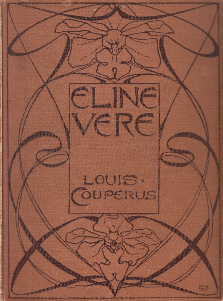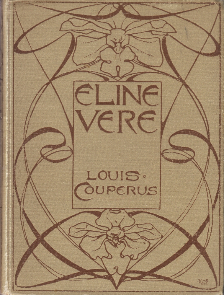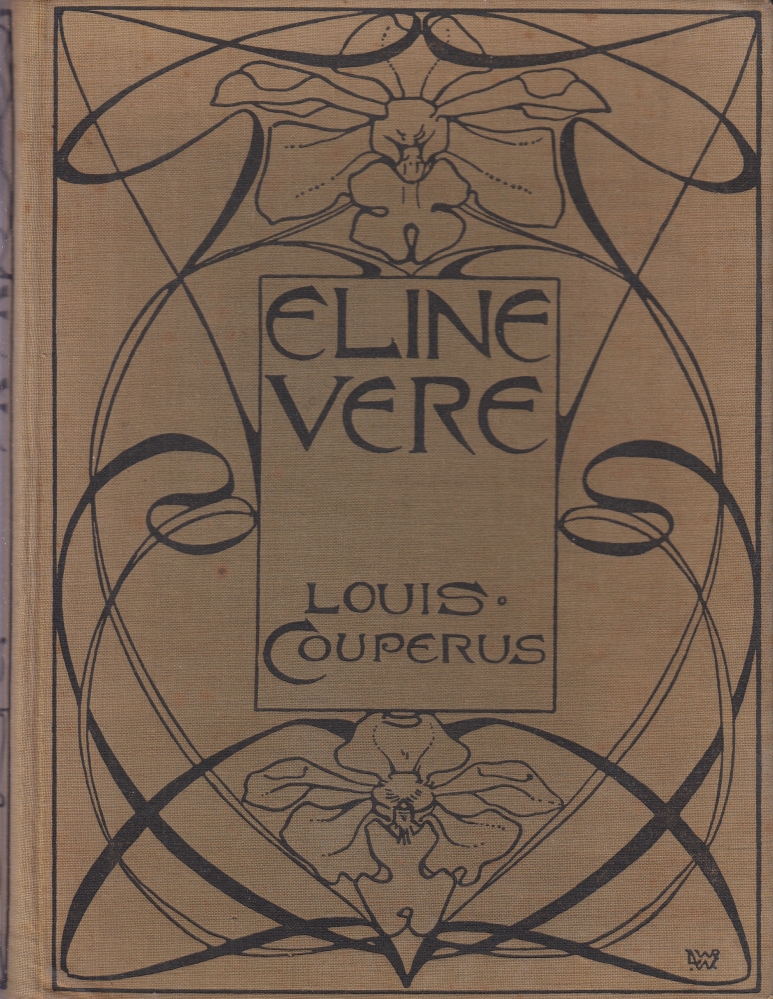 8. COUPERUS, Louis Eline Vere. Een Haagsche roman. Amsterdam, Van Kampen, [1898]. Gedecoreerd chocoladebruin linnen (ontwerp L.W.R. Wenckebach). 246, 260 p. 4e, ‘door den auteur herziene’ druk. Wat scheefgelezen. Naam voorin: Annie van Vliet, december 1903.