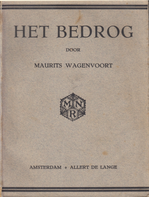 41. WAGENVOORT, Maurits Het bedrog. Amsterdam, Allert de Lange, [1927]. Ingenaaid. 260 p. 1e druk. Schuingelezen, scheurtje in de rug. Oud stempel voorin. Wat roest. Inktvlek op de rechterbovenhoek van het boekblok.