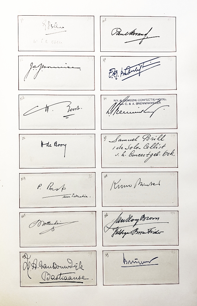* Om een cultureel centrum te openen in het Paviljoen was een oude droom van de uit Den Bosch afkomstige uitgever en cultuurorganisator Herman van den Eerenbeemt (1890-1951). Deze foliant bedankt hem daarvoor als vriendenboek; wellicht zijn het de namen van degenen die een bijdrage leverden aan het Van den Eerenbeemtfonds. Daaronder zijn handelsmagnaten zoals Theo Dobbelman en leden van de families Vroom, Dreesmann, Van Lanschot en Brenninkmeyer, kunstenaars zoals Willem Andriessen, Oskar Back, Cees Bantzinger, Hubert Barwahser, J.C. Bloem, Charles Boost, Kuno Brinks, Jan Eloy Brom, Joan Collette, Antoon Coolen, Hubert Cuypers, Maurits Dekker, Eduard Elias, Louis van Gasteren, Paul en Emmy Huf, Jeanne Kloos, Ton Koot, Guillaume Landré, G.H. de Marez Oyens, Rudolf Mengelberg, Herman Roelvink, Willem Sandberg en Gisèle van Waterschoot van der Gracht, daarnaast de bisschoppen Huibers (van Haarlem) en Mutsaerts (van Den Bosch), Paul Brand, Herman de la Fontaine Verwey, Menno Hertzberger en Fritz Schiller, en ten slotte een visitekaartje van ‘De onbekende rentenier’.