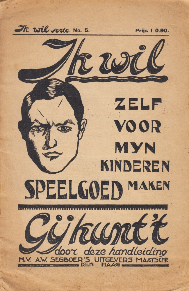 31. IK WIL Ik wil zelf speelgoed voor mijn kinderen maken. Den Haag, A.W. Segboer, [1923]. 25 x 15 cm. Geniet. 44 p. Geïllustreerd. Meer dan 100 schema’s en foto’s. 1e druk. Wat verbruind, kreukjes.
