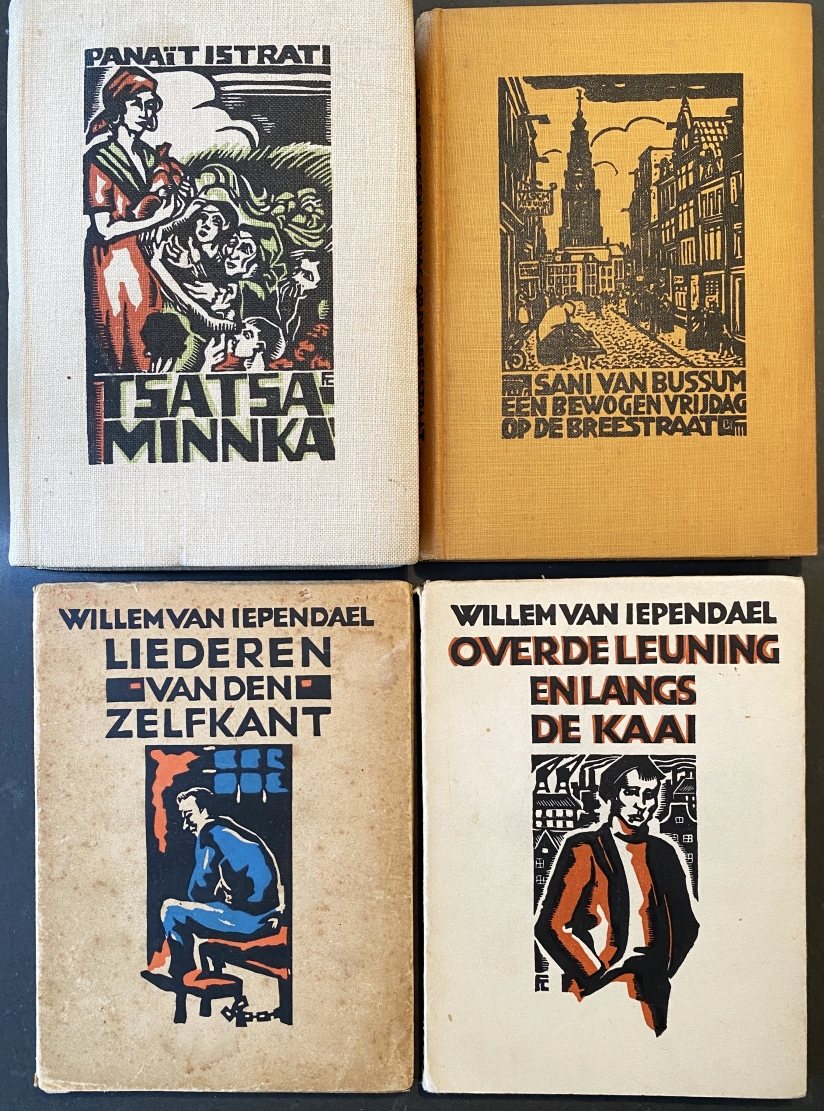 3. Willem van IEPENDAAL (pseud. van Willem van der Kulk): Over de leuning en langs de kaai. Amsterdam, Querido, 1934. Ingenaaid met omslag van Cohen. 76 p. Niet afgesneden. 1e druk. Netjes. Van Dam 546.