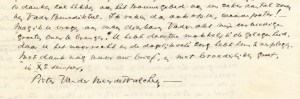 * Met handgeschreven opdracht van Boutens aan de schilder Willem van Konijnenburg: ‘Aan zijn vriend/ W.A. van Konijnenburg/ met beste gelukwensch/ 11 Febr. 1930/ P.C. Boutens./.’ De kunstenaar schilderde in 1914 een opvallend portret van Boutens, waarop de dichter zijn innerlijk lijkt te peilen. Op 11 februari 1930 werd hij 62 jaar. Cat. Brusse 675. Rijkse 2.99.