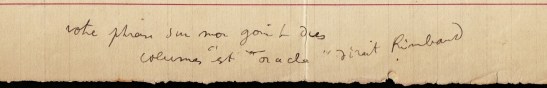 * Cocteau was ziek en dankt de geadresseerde voor diens boek, dat hij via (Pascal) Pia gekregen heeft en waar Cocteau blijkbaar in voorkomt: ‘Vous etes notre agriculteur. On voit comme dans une ruche de verre le travail des abeilles. Mais pourqoui donc avez vous supprimé une phrase qui m’isolait ce qui m’enchante toujours’. In een op zijn kant geschreven postscriptum komt Arthur Rimbaud om de hoek kijken: ‘Votre phrase sur mon goût des columes “est oracle” dirait Rimbaud’.