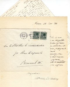 3. BELCAMPO Handgeschreven brief aan ‘Geachte da Chiesa Delicata’ [= K. Lekkerkerker]. Handschrift in inkt. Gesigneerd ‘HP Schönfeld Wichers’ en gedateerd ‘A’dam 28 Nov ’38’. Eén blad (gelinieerd blocnotevel). Alleen recto. 25,6 x 20,4 cm. 12 regels tekst. In oorspronkelijke envelop.