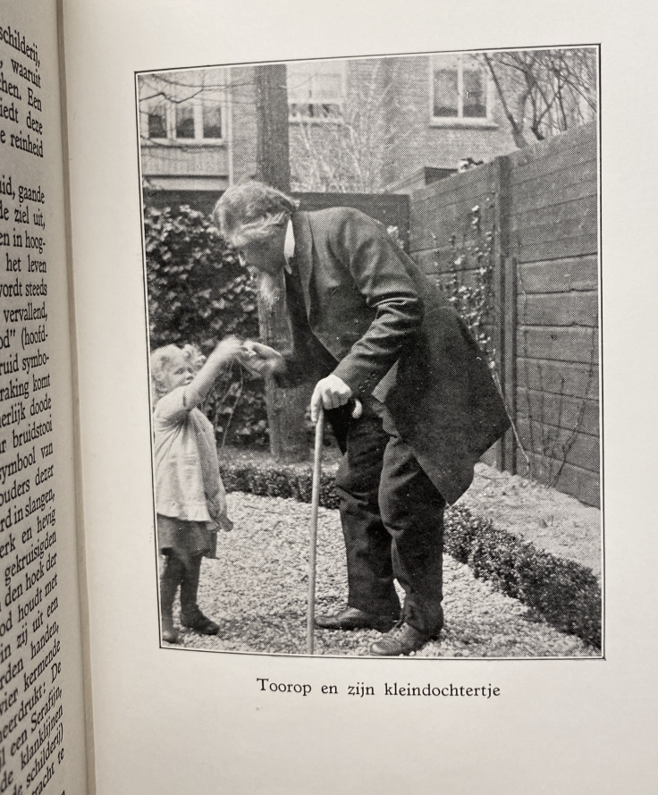34. (TOOROP, Jan). Miek JANSSEN Herinneringen aan Jan Toorop, met drie krabbels en een reproductie naar een geschilderd portret door de schrijfster en 13 illustraties. Amsterdam, Van Munster, [1933]. Halflinnen. (4), 96 p. Met foto’s. 1e druk. Wat roest, maar een prima exemplaar.
