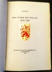 17. (HOES, F.). HILDEBRAND Hoe warm het was en hoe ver. (Illegale oorlogsuitgave). Amsterdam, F. Last & Co. (= F. Hoes), 1943. 26 x 17 cm. Halfperkament. 52 p. Niet afgesneden. Op de titelpagina een wapenschild in reliëfgoudstempel. Gedrukt in 250 genummerde exemplaren. 1e druk. Mooie conditie.