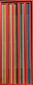 21. JONG, Frans de Boek zonder woorden. (Amsterdam, Frans de Jong, 1989. Chinese blokboekbinding in een omslag met lange linten (niet af?). 20 p. waarvan 9 met een typografische kleurenprent van Frans de Jong. Gedrukt in 30 genummerde exemplaren (dit is nr. 27). Gesigneerd onder het colofon.