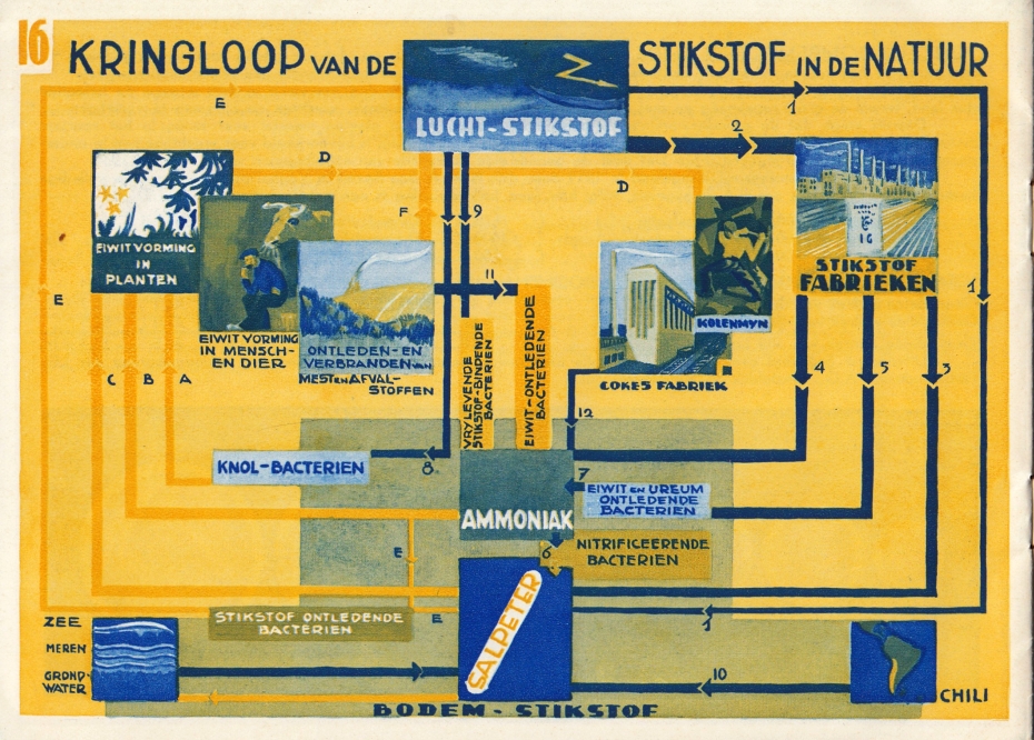 * Bijzonder fraai gemaakte tentoonstellingscatalogus voor een tentoonstelling over tuinbouw en de hulpmiddelen daarvoor: ‘Kringloop van de stikstof in de natuur’ (actueel!). Granen, bemesting, landaanwinning, alles te zien op het tentoonstellingsschip dat door heel Nederland voer. Mooi gemaakt boekje, niet in Worldcat.