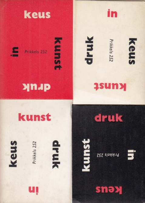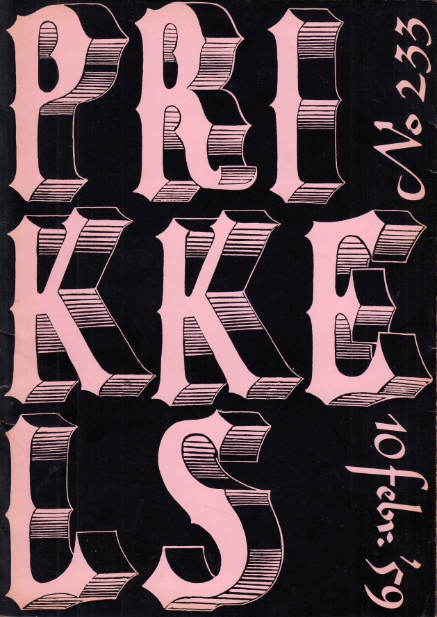 258. November 1961. Prikkels’ grafische bibliografie. Omslag Pieter Groot. Met mooi reclameblad ‘Satijn’.