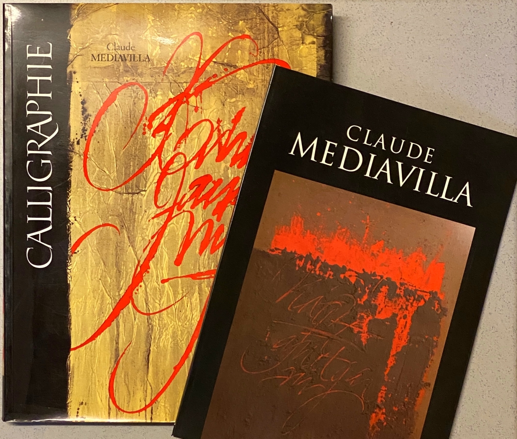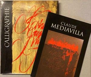 22. (KALLIGRAFIE). MEDIAVILLA, Claude Claude Mediavilla. Calligraphie. Du signe calligraphié à la peinture abstraite. Préfaces de Pierre Restany et Gérard Xuriguera. Paris, Imprimerie Nationale Editions, 1997. 32 x 26 cm. Ingenaaid met flappen. 336 p. Rijk geïllustreerd in kleuren én goud. Tekst in het Frans. 1e druk. Kreukje aan de achterkant.