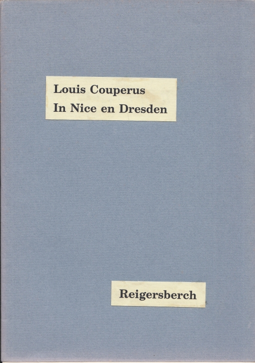 16. COUPERUS, Louis In Nice en Dresden. Doorwerth, Reigersberch, 1989. Cahiersteek met stofomslag. 20 p. Vervaardigd in een oplage van 59 genummerde exemplaren. Zeer gaaf.