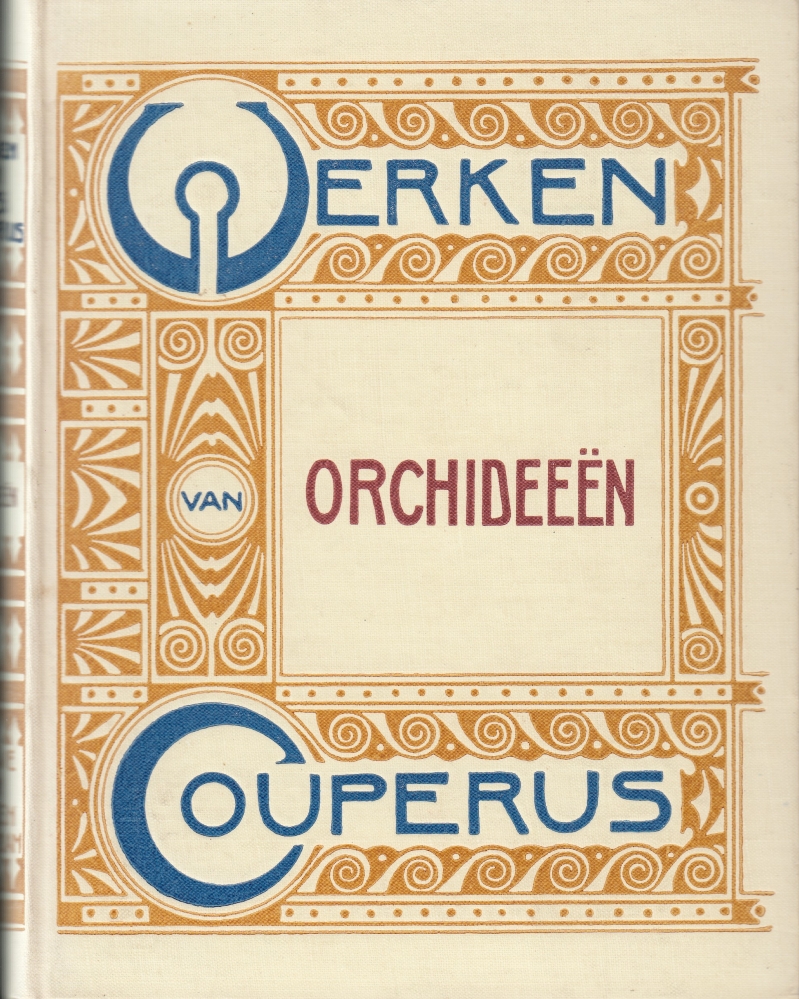 22. COUPERUS, Louis Orchideeën. Een bundel poëzie en proza. (Werken-band). Amsterdam, Veen, [1905]. Gedecoreerd linnen (ontwerp H.P. Berlage) over voor- en achterkant. (8), 208 p. 2e druk. Onwaarschijnlijk frisse en onverkleurde boekband. Voorin een vervaagde inscriptie: ‘H. Beelaerts van Blokland/ 3 November 1943 ‘. Papier heeft hier en daar roestvlekjes.