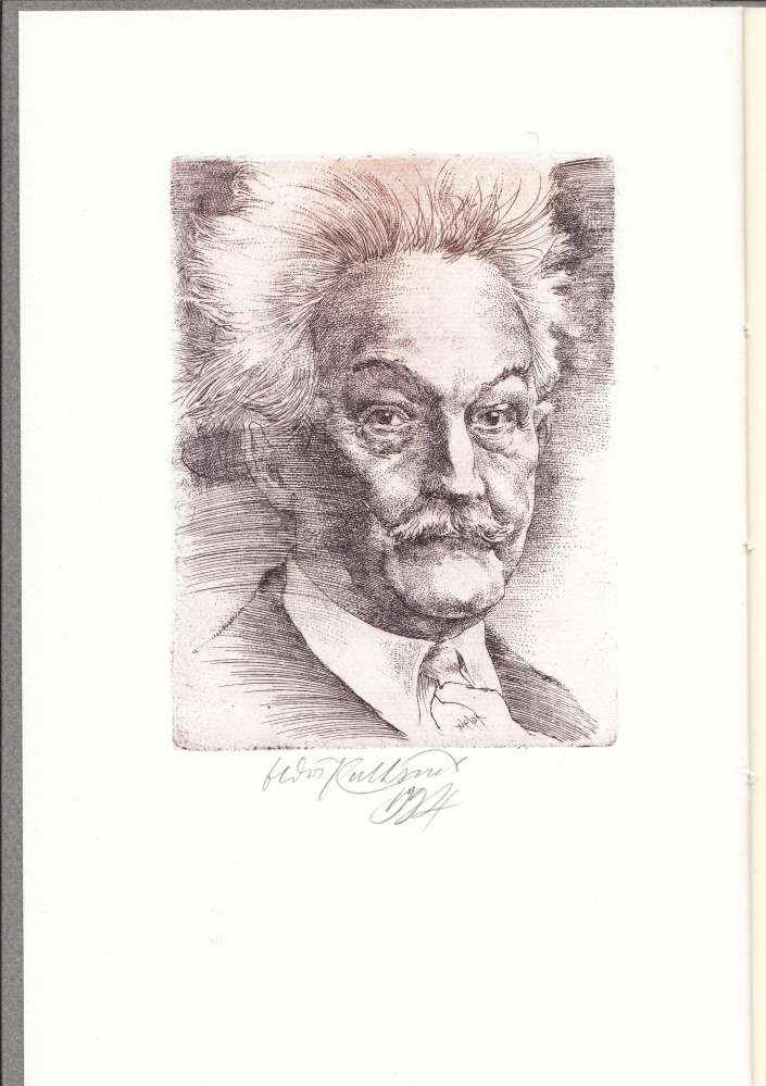 39. (JANÁCEK, Leoš). BROD, Max Erinnerung an Leoš Janáček zu seinem 100. Geburtstag. Linnen. 16 p. Met een originele kopergravure van Oldřich Kulhánek (gesigneerd en gedateerd 1994) op BFK Rives-papier. Gedrukt in 70 genummerde exemplaren. Bezorgd door Willem Keizer. 1e druk. Als nieuw.