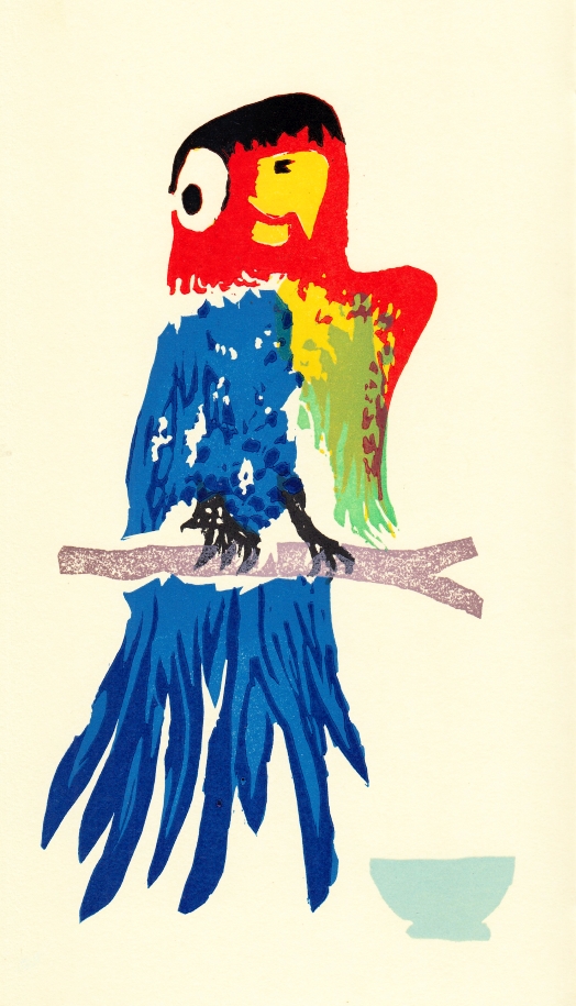 * Dit is een van de 50 genummerde luxe-exemplaren gedrukt op Japans papier. Kleine vrolijke houtgravures, sommige paginagroot (maar dat is nog klein in dit snoeperige miniboekje), andere heel precies op minder dan een vierkante centimeter.