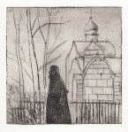 1. BIERUMA OOSTING, Jeanne Winter in Moskou. Acht etsen van Jeanne Bieruma Oosting door de kunstenares gedrukt en begeleid met door haarzelf geschreven schetsen. Zutphen, De Gaillarde Pers, 1975. Linnen. 40 x 28 cm. Gedrukt in een oplage van 75 genummerde en door de kunstenares gesigneerde exemplaren.