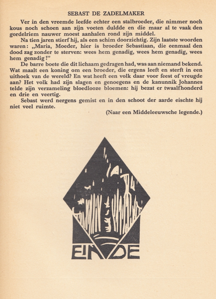 * Dit winterboek opent met een beschouwing van Jan Engelman over het werk van de Maastrichtse schilder, glazenier en boekbandenier Henri Jonas (1878-1944). De rest van de uitgave (met verhalen van Antoon Coolen, Pieter van der Meer de Walcheren en vier anderen) heeft niets met Jonas te maken, maar alle illustraties – schilderijen, glas-in-loodramen, tekeningen en houtsneden – zijn wél van zijn hand. (Zie ook het eind van deze nieuwsbrief).
