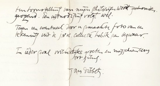 Met een los bijgevoegd kaartje met de handtekening van Toon Kortooms, gedateerd ’16/5 ’65’.