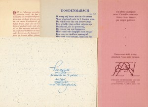 * De naam van Schlesinger wordt niet genoemd, omdat hij Joods was en hij in het verborgene voor Trio werkte. Het gedicht ‘Doodenmarsch’ gaat over de verwoesting van Rotterdam.