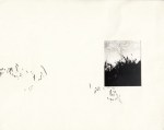 * Bijgevoegd: drie van de acht originele illustraties uit het boek, Drie stukken karton, waarop foto’s zijn geplakt, waar de kunstenaar met dik potlood strepen op en naast heeft gezet. Het berteft de illustraties van p. 26, 42-43 en 50. Formaat 19,8 x 12,4 resp. 19,8 x 24,9 en 19,8 x 12,4 cm. Opmerkelijke uitgave, de ruige, kale gedichten met schimmige illustraties.