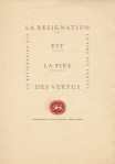 42. (TUINWIJK PERS). [FLAUBERT, Gustave] La résignation est la pire des vertus. Haarlem, Tuinwijk Pers, 1966. Plano, eenzijdig bedrukt. Gedrukt in slechts 10 exemplaren op een vel Ossekop van Van Gelder. Enkele vage vouwtjes.