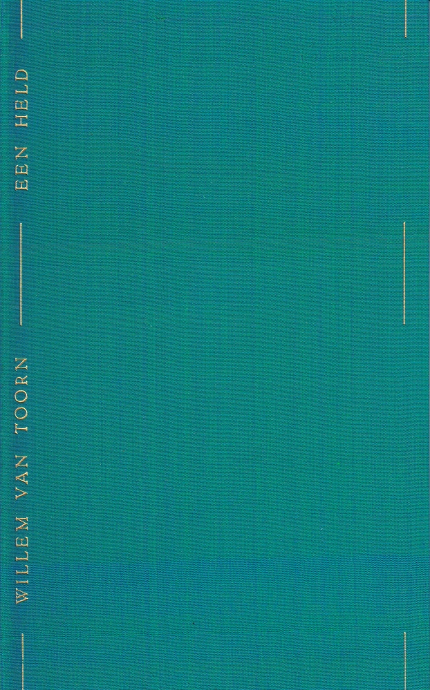 43. TOORN, Willem van Een held. (Z.p., Hein Elferink, 1993). Gebonden in blauwgroen iriserende Thaise zijde. In papieren foedraal (Binderij Phoenix). 24 p. Met de hand gezet uit de Fournier en gedrukt door Hein Elferink op Zerkall-Bütten in een oplage van 50 op de pers genummerde exemplaren. 1e druk.