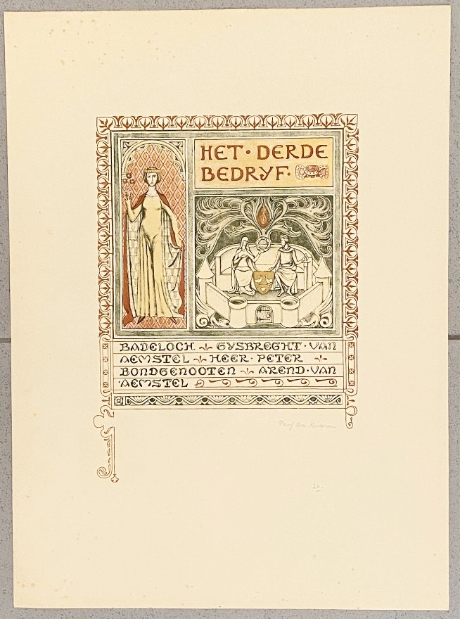 9. (DERKINDEREN, Antoon). Joost van den VONDEL Originele proefdruk van een blad uit ‘Gysbreght van Aemstel. (…) Boekversieringen van A.J. Derkinderen. Eén blad. 43 x 31,5 cm.