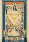 44. TOOROP, Jan ‘Ter herinnering aan het XXVII Internationaal Eucharistisch Congres 22-27 juli 1924 Amsterdam’. Originele litho in kleuren. 32,8 x 20,8 cm. Wat roest aan de randen, scheurtje van circa 1 cm in boven- en onderrand (niet in het beeld), paar lichte vouwtjes en kreukjes.