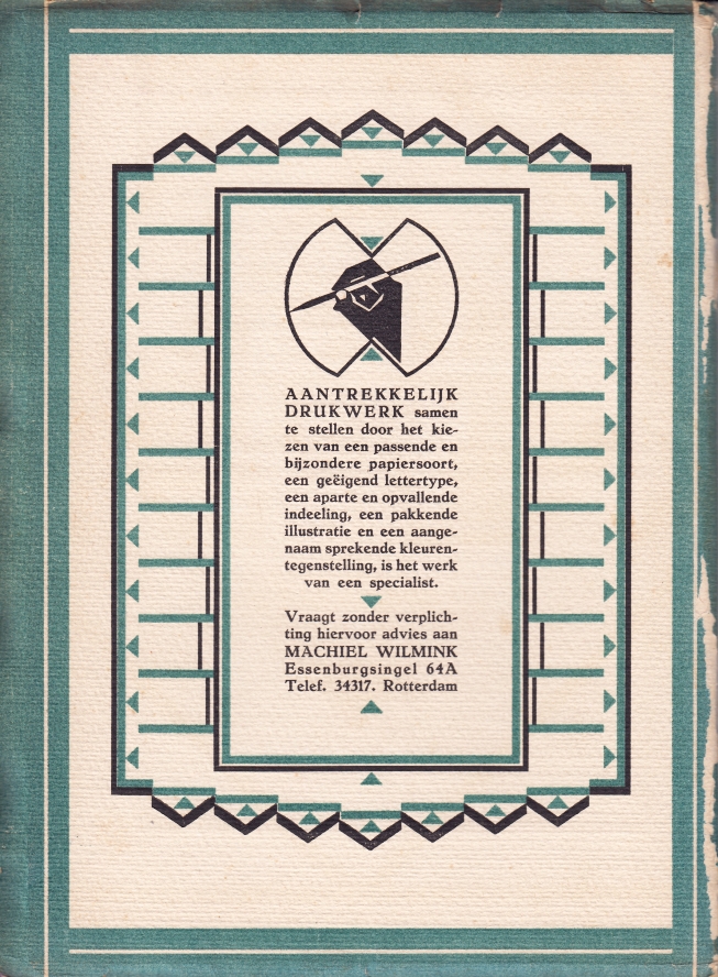 * Fraai omslagontwerp van Fré Cohen, niet gesigneerd en daarom niet in Van Dam/ Van Praag 135, maar het lijkt mij duidelijk. Inhoudelijk interessant met veel gedetailleerde tabellen.