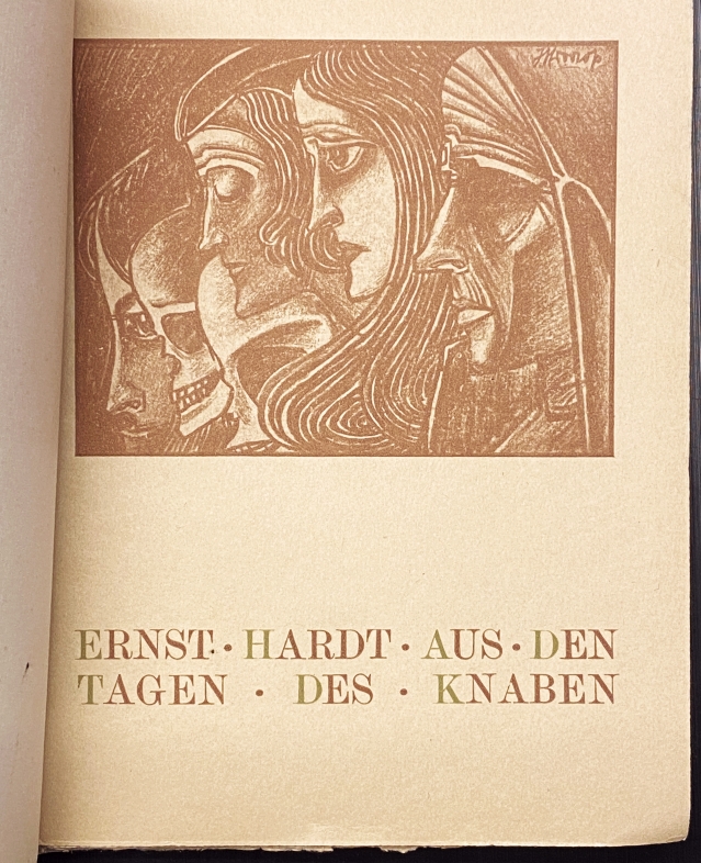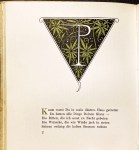 45. (TOOROP, Jan). HARDT, Ernst Aus den Tagen des Knaben. Leipzig, Insel-Verlag, 1904. 16 x 12 cm. Origineel perkament met meegebonden vooromslag. (6), 88 p. Gedrukt in 500 genummerde exemplaren op geschept papier. Vooromslag met een ontwerp van Jan Toorop. Voorin een sierinitiaal van Marcus Behmer, gedrukt in groen en zwart. Beginletters van alle gedichten in groen gedrukt. 1e druk. Linten ontbreken (stukjes ervan liggen in het boek). Perkament staat flink open. Inscriptie van een vroegere eigenaar uit 1904. Voorkneep aan de binnenkant deels los.
