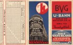30. KEMPINSKI BVG U-Bahn. April 1931. (Tijdschema en kaartje uitgegeven door Kempinski – Haus Vaterland, Berlijn). Berlijn, Kempinski, 1931. 14 x 7 cm. Leporello van 8 pagina’s, gedrukt in elementaire kleuren. Lichte slijtsporen.