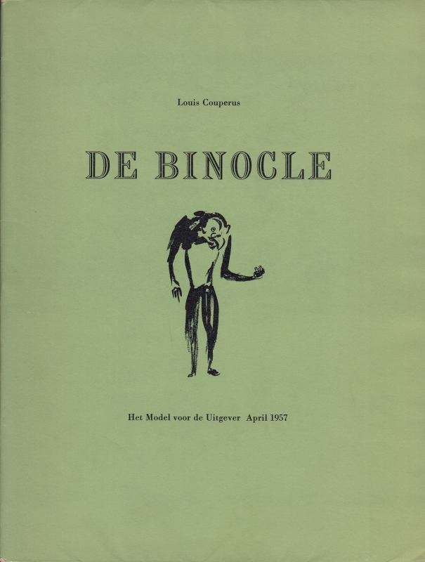 4. COUPERUS, Louis De binocle. Voorgedragen door Nel Oosthout op 29 maart 1957 in de Stadsschouwburg te Amsterdam, ter gelegenheid van de opening van de twee en twintigste Boekenweek. (Amsterdam, Corvey), 1957. Ingenaaid in omslag. 16 p. Met twee illustraties van Ruth Fischer. Mooi exemplaar.