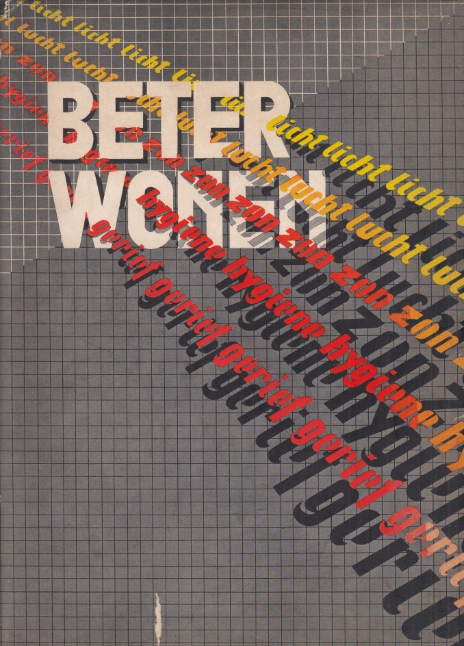 1. ALMA, Peter Beter Wonen. Gedenkboek, gewijd aan het werk der woningbouwvereenigingen in Nederland, uitgegeven ter gelegenheid van het 25-jarig bestaan van den Nationalen Woningraad, Algemeenen Bond van Woningbouwvereenigingen, 1913-1938. Amsterdam, De Arbeiderspers, 1938. 31 x 22 cm. Linnen met stofomslag (ontwerp Lotte Stam-Beese). 240 p. Vele illustraties, grafieken en isogrammen (deels in kleur). Met een uitslaande kaart. 1e druk. Stofomslag aan de randen iets versleten en met enkele randscheurtjes, de grootste is 3 cm. De uitslaande kaart is iets roestig. Boekband en boek in zeer goede staat. Met inliggende aanbiedingsbrief voor een tijdschrift: een doorslag van een tiksel, gedateerd Juni 1938.