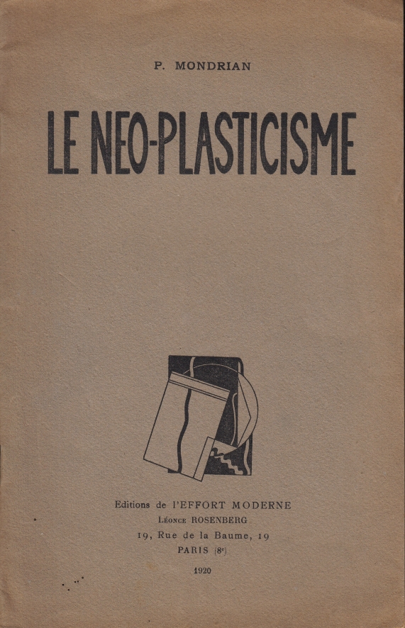 38. MONDRIAN, P. Le néo-plasticisme. Principe général de l’equivalence plastique. Paris, Éditions de l’Effort moderne / Léonce Rosenberg, 1920. Geniet. (2), 14 p. 1e druk. Kleine vlekjes op voorzijde omslag, deukjes in de achterkant, verder zeer goed en onversleten. Voorin de handtekening van de journalist M.H. Werkman (broer van H.N.).