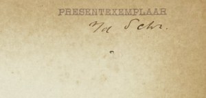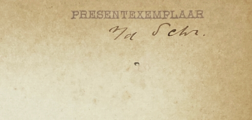 * Exemplaar met handgeschreven opdracht van de auteur: ‘Willem en Jeanne/ Vogelsang/ van/ F van Eeden’. Willem Vogelsang (1875-1954) was een toonaangevend professor in de kunstgeschiedenis, bovendien de eerste hoogleraar in die discipline aan een universiteit. Hij was getrouwd met de violiste Jeanne Hijmans (1873-1941).
