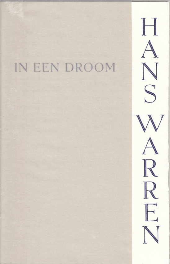 46. WARREN, Hans In een droom. (Haarlem, Lojen Deur pers, 2011. Cahiersteek in een omslag van calqeerpapier. (4) p. Met de hand gezet uit de Sabon-Antiqua en Egmont Sierkapitalen en gedrukt in een oplage van 60 exemplaren. 1e druk. Schaafplekje omslag.