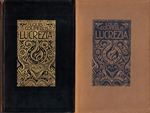 7. COUPERUS, Louis Lucrezia. Amsterdam, Querido, 1920. Soepel oranjerood linnen met stofomslag (!) en groen leeslint. Kop verguld. 120 p. 1e afzonderlijke druk. Omslag onderaan de rug ingescheurd en aan de binnenkant gerepareerd. Boek in prima staat.