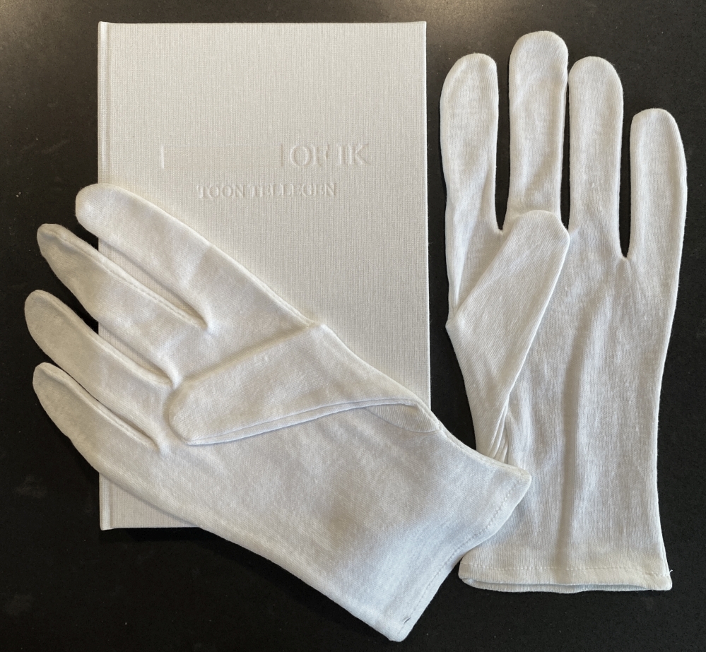 * Bijgevoegd: twee witte handschoentjes (vanwege het besmettelijk witte linnen).