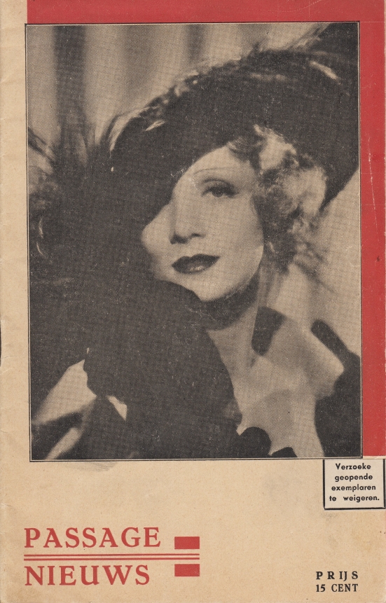 13. (FILM). PASSAGE-THEATER Passage Nieuws. (Met filmprogramma vanaf 15 September 1933). Den Haag, Passage-Theater, 1933. 22 x 14 cm. Geniet. 24 p. Geïllustreerd en met advertenties. 1e druk. Met geopend sluitzegeltje (‘Verzoeke geopende exemplaren te weigeren’). Mooi.