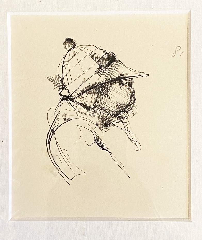 33. KUIK, Dirkje. Als: William D. KUIK Originele pentekening. Ingelijst onder passepartout achter glas. Lijstformaat 26,5 x 24 cm.