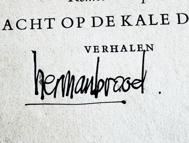* Met op pagina (2) een fantastische tekening door een nog maar achttien jaar jonge Herman Brood met gele verf en inkt: een naakte vrouw en een dwerg. Op de titelpagina voluit gesigneerd ‘herman brood’. ‘Brood schonk deze pocket in 1964 aan zijn vriend Hugo Hol. Zij kenden elkaar van de kunstacademie in Arnhem, waar Brood de richting ‘vrij schilderen’ deed. Na een paar maanden stopte Brood met de opleiding om zich volledig op de muziek te storten. Hugo Hol werd beeldhouwer’ (informatie van de vorige eigenaar, die dit museale object in 2020 rechtstreeks van Hugo Hol kocht).