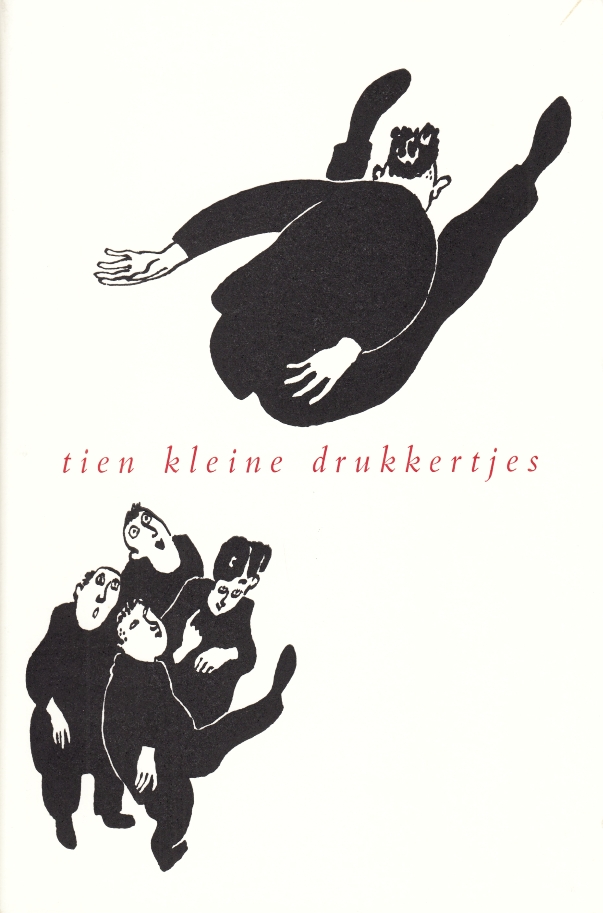 12. EIJK, Hans van Tien kleine drukkertjes. (Met tekeningen van Peter van Hugten). Banholt, In de Bonnefant, 2015. Cahiersteek. 16 p. Uitgave ter gelegenheid van 40 jaar drukwerk in de marge, oktober 2015.
