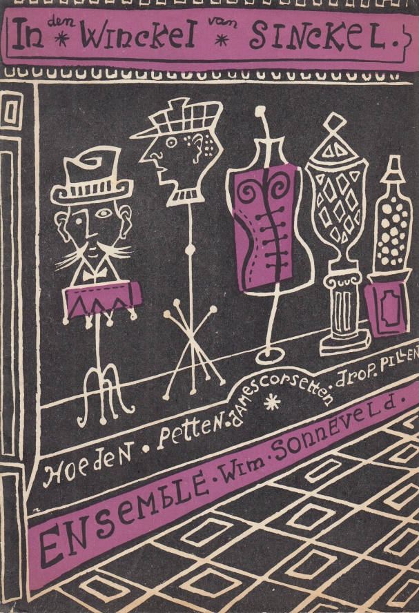 * Programma van een succesvol cabaretprogramma van Wim Sonneveld met tekstsamenwerking van o.a. Michel van der Plas, Jan van Ees, Annie M.G. Schmidt en Simon Carmiggelt. Decors en costuums van Friso Wiegersma. De mooie omslagtekening (‘Hoeden, petten, damescorsetten’) is helaas niet gesigneerd.