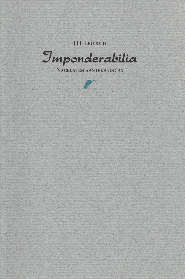 34. LEOPOLD, J.H. Imponderabilia. Nagelaten aantekeningen. Met een nawoord van H.T.M. van Vliet. Woold-’t Harkel, De Uitvreter, 2011. Cahiersteek. 12 p. Met een portret van Leopold door H. Berssenbrugge als frontispice. Gezet uit de letter Dante en gedrukt op Zerkall in 40 exemplaren. 1e druk. Vouwtje in voorkant.