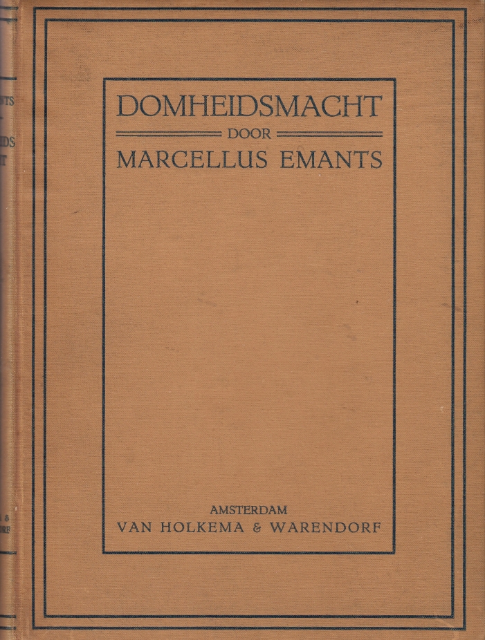 4. EMANTS, Marcellus Domheidsmacht. Toneelspel in drie bedrijven. Amsterdam, Van Holkema & Warendorf, 1918. Linnen. 128 p. 2e druk. Pagina 15-16 en 127-128 liggen los.