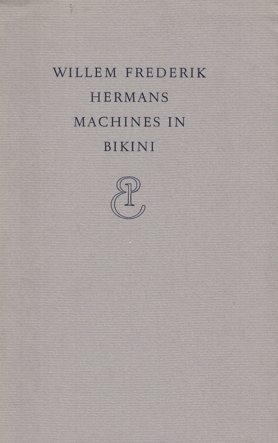 20. HERMANS, W.F. Machines in bikini. (Zandvoort), Eliance Pers, (1974). Ingenaaid met omslag. (4), 28 p. Gezet uit de Romulus en gedrukt door Joh. Enschedé en Zonen in een oplage van 100 genummerde exemplaren. 1e druk. Miniem rafeltje bovenaan de binnenflap van het stofomslag. Naampje tegenover titel.