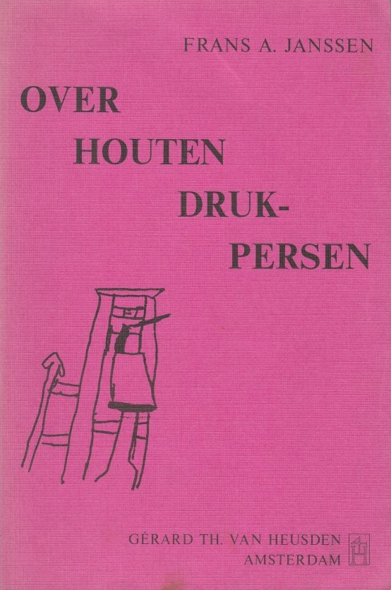 26. JANSSEN, Frans A. Over houten drukpersen. Een studie van het bronnenmateriaal met het oog op de reconstructie van een houten drukpers te Amsterdam. Amsterdam, Gerard Th. van Heusden, (1977). Ingenaaid. VIII, 88 p. Met afbeeldingen. 1e druk. Licht verkleurd.
