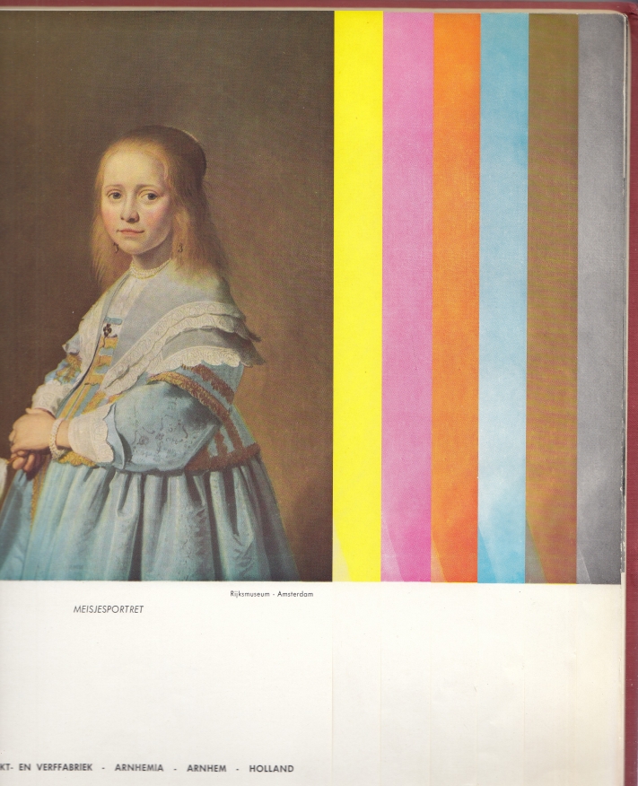 6. ARNHEMIA, N.V. Drukinkt- en Verffabriek Normaalinkten voor boekdruk / Encres normales typo / Normal-inks for Letterpress / Tintas normales tipo / Normalfarben fur Buchdruck. Arnhem, Arnhemia, jaren 50. 27 x 26 cm. Linnen. 40 p. Kleurenproef met afbeeldingen van 17e-eeuwse schilderijen voor verschillende inktsoorten. 1e druk. Lichte gebruikssporen.